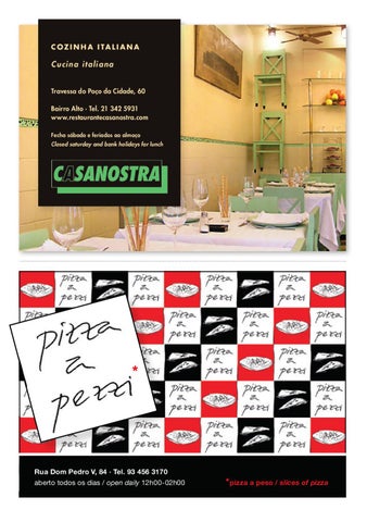 Cu c i n a i t a l i a n a Travessa do Poço da Cidade, 60 Bairro Alto · Tel. 21 342 5931 www.restaurantecasanostra.com Fecha sábado e feriados ao almoço Closed saturday and bank holidays for lunch