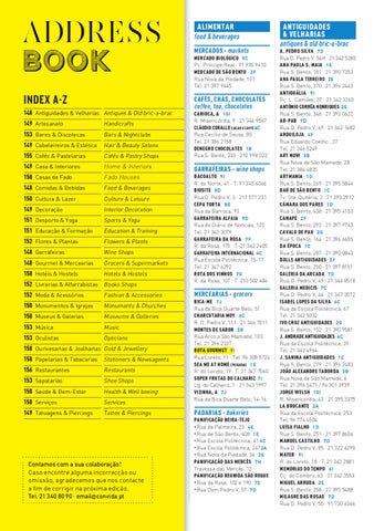Contamos com a sua colaboração ! Caso encontre alguma incorrecção ou omissão, agradecemos que nos contacte a fim de corrigir na próxima edição. Tel. 21 340 80 90 · email@convida.pt 148 · CON VIDA VIDA BAIRRO ALTO & PRÍNCIPE REAL ADDRESS BOOK