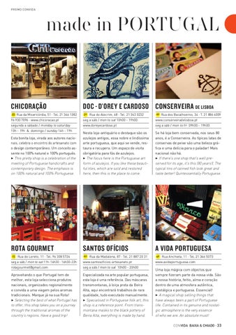 Uma loja mágica com objectos que sempre fizeram parte da nossa vida. São a nossa história, feitio, alma e coração dentro de uma atmosfera autêntica, nostálgica e portuguesa. Essencial! 3 A magical shop selling things that have always been a part of Portuguese life. Contained in its genuine and nostalgic atmosphere is the very essence of who we are. An absolute must! CON VIDA BAIXA & CHIADO · 33