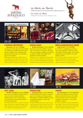 Rua Nova do Almada, 26 · Tel. 21 346 8173 Vencedora do prémio “Melhor Loja Design” dos Fashion TV Awards”, nesta loja arrisca-se a perder a cabeça com sapatos e acessórios Made In Portugal. Para mulheres e homens fashion! 3 Winner of the “Best Shop Design” prize at the “Fashion TV Awards”, you’ll find it hard to resist the fashionable Portuguesemade shoes and accessories at this shop.