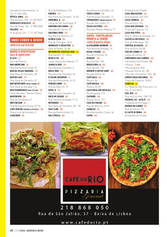 Calçada do Sacramento, 14 Tel. 21 346 2356 ÓPTICA JOMIL 6D Rua do Ouro, 249 · 21 325 9810 RODRIGUES OCULISTA 8E Rua da Prata, 144 · 21 882 2005 SOLARIS 6C R. Augusta, 231 · T. 21 347 0660