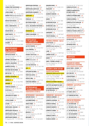 EDUARDO GOMES 9E R. Madalena, 110 · 21 881 0110 FRANJARTE 8D Rua dos Fanqueiros, 234 Tel. 21 887 3989 MARQUES SEQUEIRA 6B Praça da Figueira, 4 - 2º Tel. 21 324 1720 NARDO 7F R. Conceição, 62 · 21 342 1350 RETROSARIA BIJOU 7F R. Conceição, 91 · 21 342 5049 RETROSARIA LARA 8F R. Conceição, 39 · 21 887 7651 RETROSARIA SILVA 7F R. Conceição, 93 · 21 346 2412 SERRANOFIL 8D Rua Assunção, 11 · 21 887 8247 TRICOTS BRANCAL 8C R. Fanqueiros, 254 · 21 887 3940
