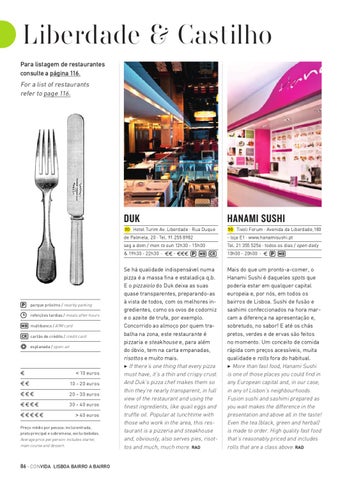 Liberdade & Castilho Para listagem de restaurantes consulte a página 116. For a list of restaurants refer to page 116.