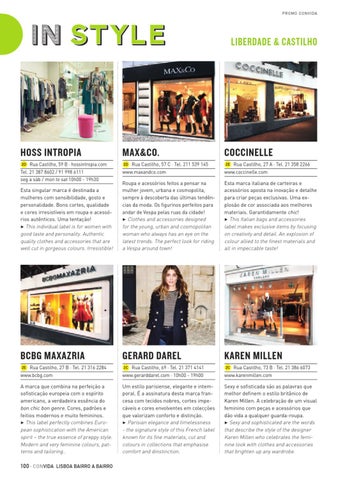 Esta singular marca é destinada a mulheres com sensibilidade, gosto e personalidade. Bons cortes, qualidade e cores irresistíveis em roupa e acessórios autênticos. Uma tentação! 3 This individual label is for women with good taste and personality. Authentic quality clothes and accessories that are well cut in gorgeous colours. Irresistible!