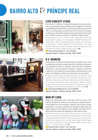 Quase nos esquecemos que é uma loja. A Mini by Luna é uma espécie de quarto de criança com muita graça, inspirado nas últimas tendências nova-iorquinas, nórdicas e parisienses. Roupa para bebés e crianças, acessórios, brinquedos e decoração que viajam algures num imaginário cool e négligé. Vão deixar os miúdos lá de casa ainda mais apetitosos. Vale a pena visitar! 3 We almost forgot it was a shop. Mini by Luna is a sort of brilliant kid's bedroom inspired by the latest trends from New York, Scandinavia and Paris. Kids' clothes, accessories, toys and decoration which feature that cool and clean design that will make your kids and bedrooms look even better! Make sure you don't miss it - it's well worth a visit! PS 7C Rua Dom Pedro V, 56 B-C · Tel. 21 346 5161 segunda a sábado / monday to saturday 10h00 - 20h00
