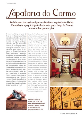 Largo do Carmo, 26 Chiado · Tel. 21 342 3386 www.sapatariadocarmo.com segunda a sábado / monday to saturday 10h-20h domingo/sunday 11h-19h CON VIDA BAIXA & CHIADO · 39