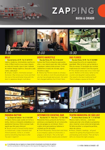 Rua das Flores, 58 · Tel. 21 346 6410 Helena Vaz Pereira dispensa apresentações: o seu talento para dar vida e atitude a qualquer cabelo já deu provas. O seu cabeleireiro mudou de morada, agora encontra-o aqui. 3 Helena Vaz Pereira needs no introduction: her ability to instil life and attitude into any hair has already been proven. Her salon has changed address.You’ll find it here.