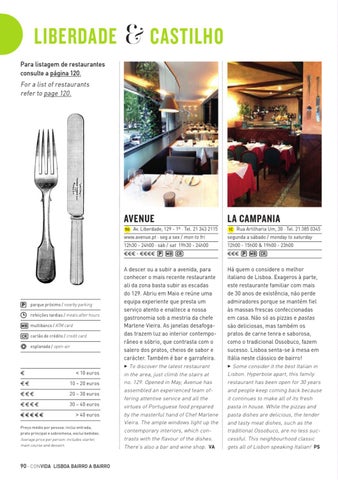 A descer ou a subir a avenida, para conhecer o mais recente restaurante ali da zona basta subir as escadas do 129. Abriu em Maio e reúne uma equipa experiente que presta um serviço atento e enaltece a nossa gastronomia sob a mestria da chefe Marlene Vieira. As janelas desafogadas trazem luz ao interior contemporâneo e sóbrio, que contrasta com o salero dos pratos, cheios de sabor e carácter. Também é bar e garrafeira. 3 To discover the latest restaurant in the area, just climb the stairs at no. 129. Opened in May, Avenue has assembled an experienced team offering attentive service and all the virtues of Portuguese food prepared by the masterful hand of Chef Marlene Vieira. The ample windows light up the contemporary interiors, which contrasts with the flavour of the dishes. There’s also a bar and wine shop. VA