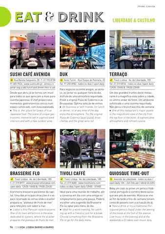 Para negócios ou entre amigos, ao almoço, ao jantar ou qualquer hora do dia, disfrute de uma atmosfera requintada. Prove a original Pizza de Codorniz e as Brusquetas. Óptima seleção de vinhos. 3 On business or with friends, for lunch or dinner, or at any time of the day, enjoy the atmosphere. Try the original Pizza de Codorniz (quail pizza), bruschettas and the great wine list.