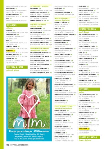 DIVERSOS various A.DA COSTA (ARTIGOS MILITARES) 7J Rua Portas Stº Antão, 28 Tel. 21 342 6970 CASH CONVERTERS 1E Rua Alexandre Herculano , 80 Tel. 21 387 4443 DN - LOJA DO JORNAL 4D Rua Rodrigues Sampaio, 111 A Tel. 21 318 7500 HIPPIE CAFÉ (ATÉ ÀS 24H) 5I Av. da Liberdade, 13 A Tel. 21 342 4301/2 MASCARILHA (ARTIGOS DE FESTA) 6G Rua do Telhal, 67 · 210 968 814 REI DAS FARDAS 5D Rua Alexandre Herculano, 11A Tel. 21 353 6351 TIVOLI FORUM 5G Avenida da Liberdade, 180 Tel. 21 353 0199