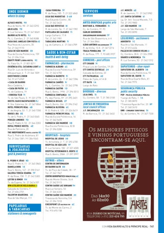 Rua de São Boaventura, 4-6 Tel. 21 346 0864 ILÍDIO ANTÓNIO ENCADERNADOR 7F R. da Vinha, 13 A · 21 347 2216 TRAÇA POMBALINA 7 F R. da Rosa, 179 · T. 93 680 3927