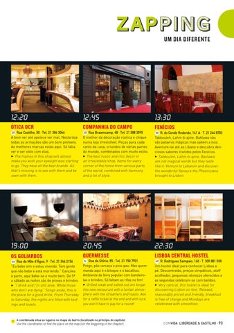 Rua Castilho, 50 · Tel. 21 386 3046 A bem ver até apetece ver mal. Nesta loja todas as armações são um bom pretexto. As melhores marcas estão aqui. Só falta ver e ser visto com elas. 3 The frames in this shop will almost make you wish your eyesight was starting to go. They have all the best brands. All that’s missing is to see with them and be seen with them.