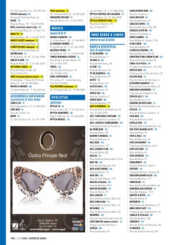 OCULISTAS opticians ÓPTICA 70 8I R. do Loreto, 35 · T. 21 342 6216 ÓPTICA ARAGONEZ 4E Rua S. Marçal, 96 · 21 346 6820 ÓPTICA BRASIL 1A