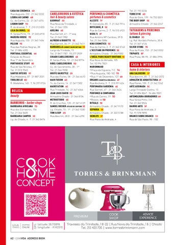 CASA & INTERIORES home & interiors ANA SALGUEIRO 2F Rua Alecrim, 85 · T. 21 343 2072 ARMAZÉM DE ARQUITECTURA 2F Rua Flores, 109 · T. 21 342 7242 ARTE ASSINADA 3C Largo Trindade Coelho, 13 Tel. 21 894 8047 · 96 486 9001 ARTEMOLDURA-DOURADORES 4H Rua Serpa Pinto, 3 A Tel. 21 342 0526 BAIRRO ARTE 3F Rua Paiva de Andrade, 2 Tel. 91 578 9890 BRANCO SOBRE BRANCO 1H Rua de São Paulo, 98 - 102