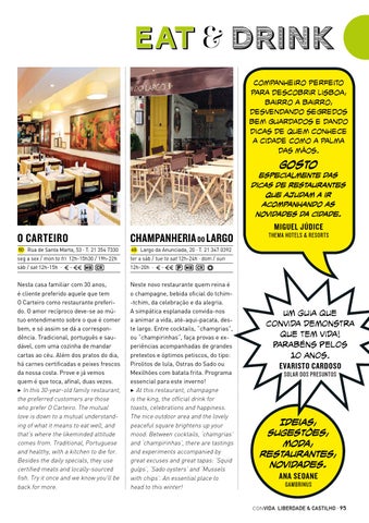 eat & drink Companheiro perfeito para descobrir Lisboa, bairro a bairro, desvendando segredos bem guardados e dando dicas de quem conhece a cidade como a palma das mãos.