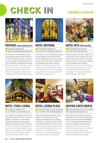Na Avenida há uma fachada azul que se destaca das demais. Este bonito hotel, um dos mais premiados, conservou os traços da época pombalina e juntou-lhe o ambiente cosmopolita da cidade. 3 One blue facade on the avenue stands out from all the rest. This pretty hotel has preserved its period style while adding a cosmopolitan ambiance, winning plenty of accolades along the way.