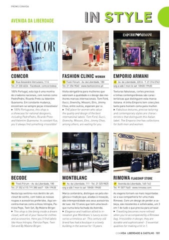 Visita obrigatória para mulheres que valorizam a qualidade e o design das melhores marcas internacionais. Tom Ford, Gucci, Givenchy, Missoni, Etro, Jimmy Choo, entre outros, esperam por si. 3 THE place for women who value the quality and design of the best international labels. Tom Ford, Gucci, Givenchy, Missoni, Etro, Jimmy Choo, among others, are waiting for you.