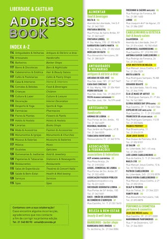 ADDRESS BOOK INDEX A-Z 114 Antiguidades & Velharias Antiques & Old bric-a-brac 114 Artesanato