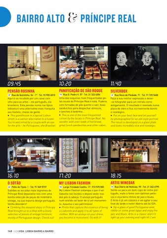 Rua D. Pedro V, 57 · Tel. 21 322 4356 Uma das esquinas mais frequentadas pelos locals do Príncipe Real é esta. Pudera, com fornadas de pão quente a sair, boas sanduíches para despachar almoços, e lanches à tardinha... 3 This is one of the most frequented corner by the locals in Príncipe Real. No wonder, with oven loads of hot bread, great lunch sandwiches and other cakes...