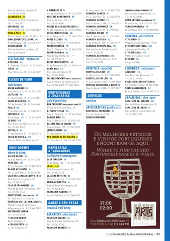 PAPELARIAS & TABACARIAS stationers & newsagents CASA FERREIRA 7F R. da Rosa, 185 · T. 21 322 4860 LOJA! 3-4G Rua Eduardo Coelho , 80 Tel. 21 342 3423 LOJA DAS REVISTAS 8I R. do Loreto, 54 · T. 21 342 1981 OFICINA COLECTIVA 4i Rua do Poço dos Negros, 58 Tel. 21 820 8403 TABACARIA MARTINS 7I Lg. do Calhariz, 4 · 21 346 4789