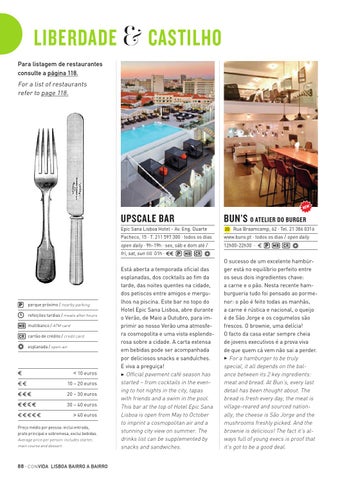 LIBERDADE & CASTILHO Para listagem de restaurantes consulte a página 118. For a list of restaurants refer to page 118.
