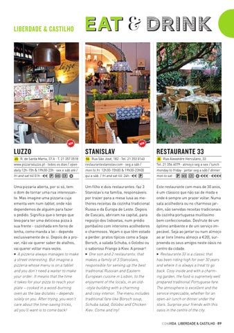 Este restaurante com mais de 30 anos, é um clássico que não sai de moda e onde é sempre um prazer voltar. Numa sala acolhedora ou no charmoso jardim, são servidas receitas tradicionais da cozinha portuguesa muitíssimo bem confeccionadas. Desfrute de um óptimo ambiente e de um serviço impecável. Seja ao jantar ou num almoço ao ar livre (menu almoço a E20), surpreenda os seus amigos neste oásis no centro da cidade. 3 Restaurante 33 is a classic that has been riding high for over 30 years and where it is always a treat to go back. Cosy inside and with a charming garden, the food is supremely well prepared traditional Portuguese fare. The atmosphere is excellent and the service impeccable, whether for an open-air lunch or dinner under the stars. Surprise your friends with this oasis in the centre of the city.