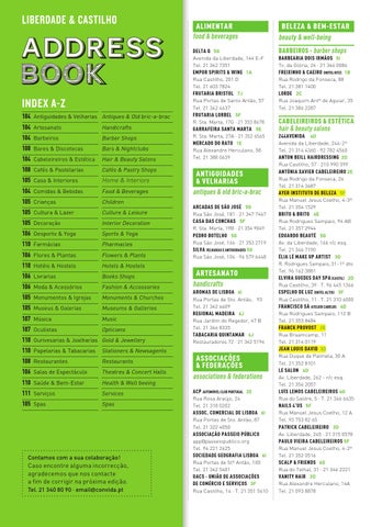 ADDRESS BOOK INDEX A-Z 104 Antiguidades & Velharias Antiques & Old bric-a-brac 104 Artesanato
