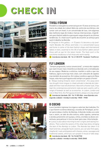 “Sempre progressiva, nunca convencional”, a mosca dos sapatos que voam trouxe mais irreverência à Avenida com a remodelação do seu espaço. Moderna e ecléctica, mantém o estilo a que nos habituou, agora numa loja mais clean, com colecções de sapatos mas também de acessórios. Em Lisboa, Londres e agora em Nova Iorque, esta marca portuguesa está sempre um passo à frente! 3 “Always looking forward, never conventional”, this sassy store has brought more tongue-in-cheek attitude to Avenida da Liberdade with their new refurbishment. Now with a fresher look, it has kept the contemporary and eclectic style we were used to, with a range of footwear as well as accessories. In Lisbon, London and now in New York, this Portuguese brand is always one step ahead! 4E Avenida da Liberdade, 230 · Tel. 91 059 4564 · www.flylondon.com segunda a sábado / monday to saturday 10h00 - 19h00