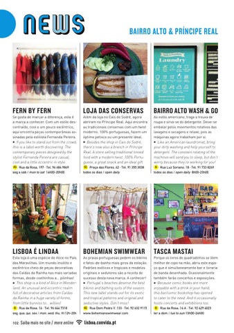 Se gosta de marcar a diferença, esta é a marca a conhecer. Com um estilo descontraído, cool e um pouco excêntrico, aqui encontra peças contemporâneas assinadas pela estilista Fernanda Pereira. 3 If you like to stand out from the crowd, this is a label worth discovering. The contemporary pieces designed by the stylist Fernanda Pereira are casual, cool and a little eccentric in style. 8G Rua da Rosa, 197 · Tel. 96 684 9869 seg a sáb / mon to sat 14h00-20h00