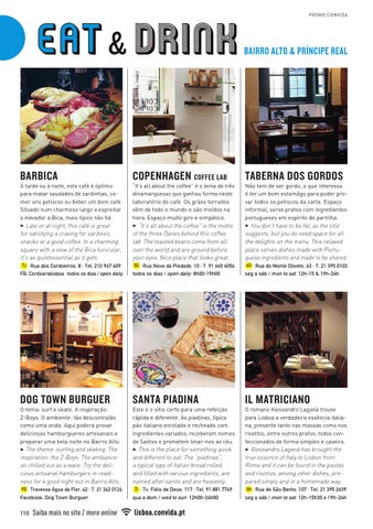 O tema: surf e skate. A inspiração: Z-Boys. O ambiente: tão descontraído como uma onda. Aqui poderá provar deliciosos hamburgueres artesanais e preparar uma bela noite no Bairro Alto. 3 The theme: surfing and skating. The inspiration: the Z-Boys. The ambiance: as chilled out as a wave. Try the delicious artisanal hamburgers in readiness for a good night out in Bairro Alto. 9G Travessa Água da Flor, 42 · T. 21 342 0124 Facebook: Dog Town Burguer