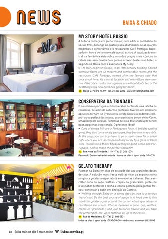Passear na Baixa em dias de sol pode dar azo a grandes doses de calor. A solução mais fresca está ao virar da esquina numa simpática gelataria especialista em receitas italianas. Basta escolher cono ou cope, waffles, crepes ou granizados, junte-lhe o seu sabor preferido e tenha a terapia perfeita para ganhar forças e continuar a subir em direcção ao Castelo. 3 Walking through Baixa on a sunny day can lead to a serious loss of cool. So the best course of action is to head over to this nice little gelateria just around the corner which specialises in real Italian ice cream. Choose between a cone, cup, waffles, crepes or "granizado", add your favourite flavour and you have the perfect pick-me-up to continue on up to the castle. 9F Rua da Madalena, 83 · Tel. 21 886 0831 todos os dias / open daily 10h30-20h00 · verão até / summer till 24h00