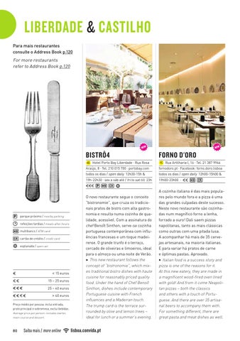 LIBERDADE & CASTILHO Para mais restaurantes consulte o Address Book p.120 For more restaurants refer to Address Book p.120