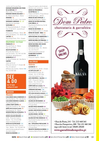 ver & fazer cultura & lazer MUSEUS Museums CASA-MUSEU AMÁLIA RODRIGUES 3E Rua São Bento, 193 - São Bento CASA-MUSEU MEDEIROS E ALMEIDA 4E Rua Rosa Araújo, 41 LISBOA STORY CENTRE 8H Praça do Comércio, 78 - Baixa MUDE MUSEU DO DESIGN E DA MODA 7G Rua Augusta, 24 - Baixa RESERVATÓRIO DA PATRIARCAL 7E Jardim do Príncipe Real MUSEU COLEÇÃO BERARDO 6H CCB - Praça do Império Belém · Tel. 213 612 878 www.museuberardo.pt MUSEU DA ELETRICIDADE 11H Avenida de Brasília, Central Tejo - Belém · Tel. 210 028 130 www.fundacaoedp.pt/museuda-eletricidade MUSEU DA MARINHA 6G