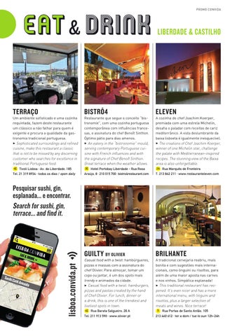A cozinha do chef Joachim Koerper, premiada com uma estrela Michelin, desafia o paladar com receitas de cariz mediterrânico. A vista deslumbrante da baixa lisboeta é igualmente inesquecível. 3 The creations of Chef Joachim Koerper, winner of one Michelin star, challenge the palate with Mediterranean-inspired recipes. The stunning view of the Baixa area is also unforgettable. 2A Rua Marquês de Fronteira T. 213 862 211 · www.restauranteleven.com