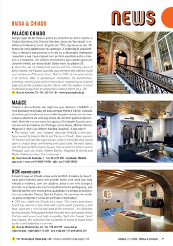 A maré trouxe ao Chiado a boa onda da DCK. A marca de beachwear para homens abriu em grande estilo uma nova loja toda forrada a madeira, com um aquário, areia e um mini lounge à entrada. A proposta da marca orgulhosamente portuguesa, são fatos de banho com muita pinta, qualidade e a preços acessíveis. Com as coleções Casual, Sport e Classic, há centenas de modelos para completar o verão de surfistas e banhistas! 3 DCK has rolled into Chiado on a wave. This men’s beachwear brand has opened a new shop with stylish wood panelling, a fish tank, sand and a mini lounge area at the entrance. The collection by this proudly Portuguese brand features very cool beach shorts that are well priced and high on quality. Split into Casual, Sport and Classic, the collection has hundreds of styles to make every surfer’s and beachboy’s summer! 4C Rua da Misericórdia, 63 · Tel. 919 403 799 · www.dck.pt todos os dias / open daily 11h-20h · sex e sáb até / fri and sat till 21h