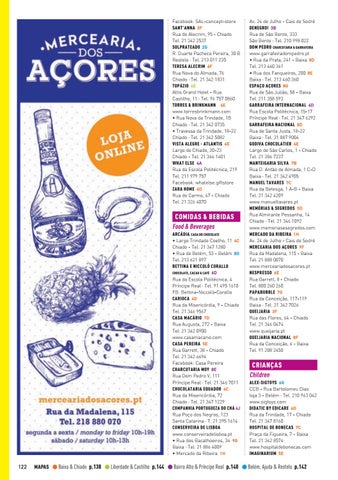 Rua da Escola Politécnica, 4 Príncipe Real · Tel. 91 495 1610 FB: Bettina-Niccolò-Corallo CARIOCA 4D Rua da Misericórdia, 9 - Chiado Tel. 21 346 9567 CASA MACÁRIO 7D Rua Augusta, 272 - Baixa Tel. 21 342 0900 www.casamacario.com CASA PEREIRA 5E Rua Garrett, 38 - Chiado Tel. 21 342 6694 Facebook: Casa Pereira CHARCUTARIA MOY 8E Rua Dom Pedro V, 111 Príncipe Real · Tel. 21 346 7011 CHOCOLATARIA EQUADOR 4C Rua da Misericórdia, 72 Chiado · Tel. 21 347 1229 COMPANHIA PORTUGUEZA DO CHÁ 4J Rua Poço dos Negros, 123 Santa Catarina · T. 21 395 1614 CONSERVEIRA DE LISBOA www.conserveiradelisboa.pt • Rua dos Bacalhoeiros, 34 9G Baixa · Tel. 21 886 4009 • Mercado da Ribeira 1H