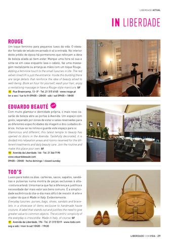 IN liberdade ROUGE Um toque feminino para pequenos luxos da vida. O elevador forrado de veludo encarnado é só a entrada. No interior deste prédio de época há pormenores que reforçam a ideia de beleza aliada ao bem-estar. Marque uma hora só sua e sinta-se em casa enquanto lava o cabelo, faz uma massagem revitalizante ou arranja as mãos com um toque Rouge. Adding a feminine touch to the small luxuries in life. The red velvet-lined lift is just the entrance. Inside this building there are large details that reinforce the idea of beauty allied to well-being. Book an hour for yourself, wash your hair, enjoy a revitalising massage or have a Rouge-style manicure. Sf 2E