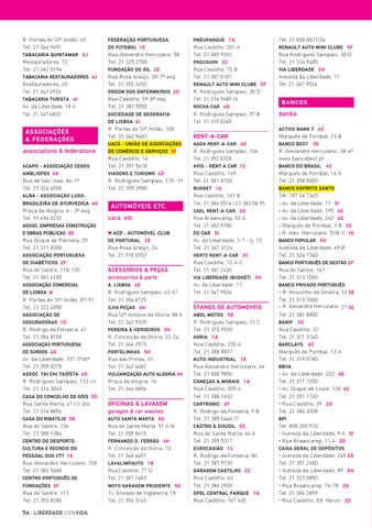 Avenida da Liberdade, 245 3 D Tel. 21 351 2680 • Avenida da Liberdade, 89 5 H Tel. 21 322 0850 • Rua Braancamp, 76-78 2 D Tel. 21 386 2859 • Rua Castilho, Ed. Heron 2 D