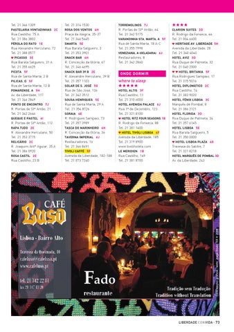 Rua de Santa Marta, 29 A Tel. 21 354 8726 Soraia 4 E