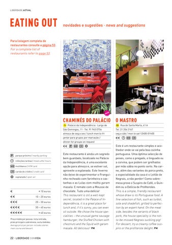 Para listagem completa de restaurantes consulte a página 53. For a complete list of restaurants refer to page 53.