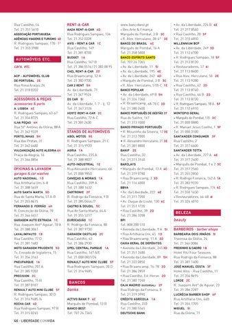 Tel. 707 24 7365 • Av. da Liberdade, 11 5 I • Av. da Liberdade, 195 4 E • Av. da Liberdade, 242 4 D • Marquês de Pombal, 3 B 3 C • R. Alex. Herculano, 51B-C 1 E