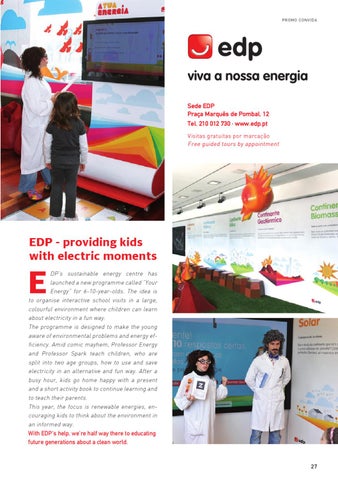 DP’s sustainable energy centre has launched a new programme called “Your Energy” for 6-10-year-olds. The idea is to organise interactive school visits in a large, colourful environment where children can learn about electricity in a fun way. The programme is designed to make the young aware of environmental problems and energy efficiency. Amid comic mayhem, Professor Energy and Professor Spark teach children, who are split into two age groups, how to use and save electricity in an alternative and fun way. After a busy hour, kids go home happy with a present and a short activity book to continue learning and to teach their parents. This year, the focus is renewable energies, encouraging kids to think about the environment in an informed way. With EDP’s help, we’re half way there to educating future generations about a clean world.