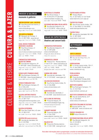 theatres and concert halls Cinemateca Portuguesa Rua Barata Salgueiro, 39 Tel. 21 359 6200 www.cinemateca.pt 3F