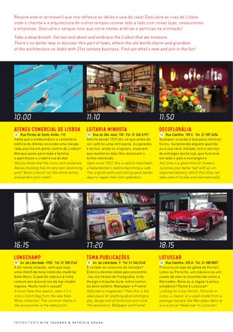 Av. da Liberdade, 9 · Tel. 21 342 0140 É viciado no consumo de revistas? Este é o destino ideal para encontrá-las nos temas de Fotografia, Arte, Design e Arquitectura, entre outros. As best-sellers: Wallpaper e Frame! Addicted to magazines? Then this is the ideal place for anything about photography, design and architecture and more. The bestsellers: Wallpaper and Frame!