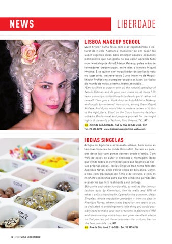 liberdade Lisboa Makeup School Quer brilhar numa festa com o ar esplendoroso e natural da Nicole Kidman e maquilhar-se em casa? Ou saber algumas dicas para disfarçar aqueles pequenos pormenores que não gosta na sua cara? Aprenda tudo num workshop de Auto&Advice Makeup, pelas mãos de formadores credenciados, entre eles o famoso Miguel Molena. E se quiser ser maquilhador de profissão está no lugar certo. Inscreva-se no Curso Intensivo de Maquilhador Profissional e prepare-se para as luzes da ribalta do mundo da moda, cinema, teatro, televisão... Want to shine at a party with all the natural spendour of Nicole Kidman and do your own make up at home? Or learn some tips to hide those little details you’d rather not reveal? Then join a Workshop de Auto&Advice Makeup and taught by renowned instructors, among them Miguel Molena. And if you would like to make a career of it, this is the right place. Enrol on the Curso Intensivo de Maquilhador Profissional and prepare yourself for the bright lights of the world of fashion, film, theatre, TV... RT 5G