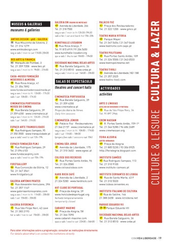 Para obter informações sobre a programação, consultar as instituições directamente. For details about what’s on contact the institutions directly. con vida liberdade