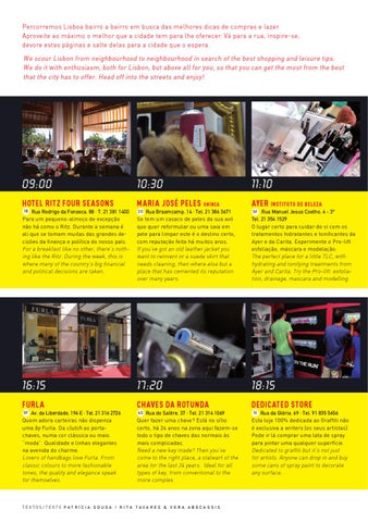 Percorremos Lisboa bairro a bairro em busca das melhores dicas de compras e lazer. Aproveite ao máximo o melhor que a cidade tem para lhe oferecer. Vá para a rua, inspire-se, devore estas páginas e salte delas para a cidade que o espera. We scour Lisbon from neighbourhood to neighbourhood in search of the best shopping and leisure tips. We do it with enthusiasm, both for Lisbon, but above all for you, so that you can get the most from the best that the city has to offer. Head off into the streets and enjoy!
