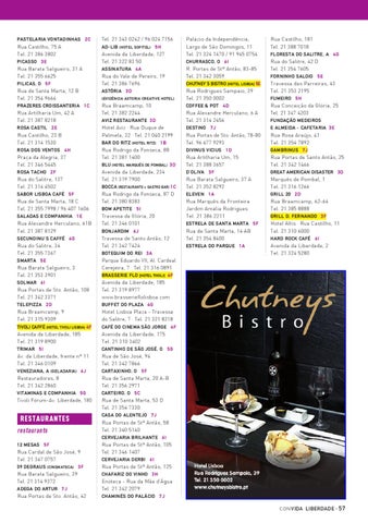 R. Portas de Stº Antão, 83-85 Tel. 21 342 3059 Chutney’s Bistro [Hotel lisboa] 5E