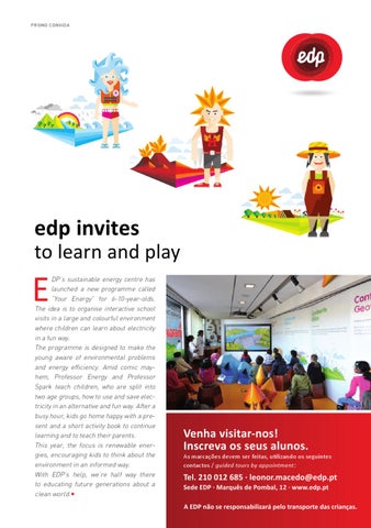 DP’s sustainable energy centre has launched a new programme called “Your Energy” for 6-10-year-olds. The idea is to organise interactive school visits in a large and colourful environment where children can learn about electricity in a fun way. The programme is designed to make the young aware of environmental problems and energy efficiency. Amid comic mayhem, Professor Energy and Professor Spark teach children, who are split into two age groups, how to use and save electricity in an alternative and fun way. After a busy hour, kids go home happy with a present and a short activity book to continue learning and to teach their parents. This year, the focus is renewable energies, encouraging kids to think about the environment in an informed way. With EDP’s help, we’re half way there to educating future generations about a clean world.•