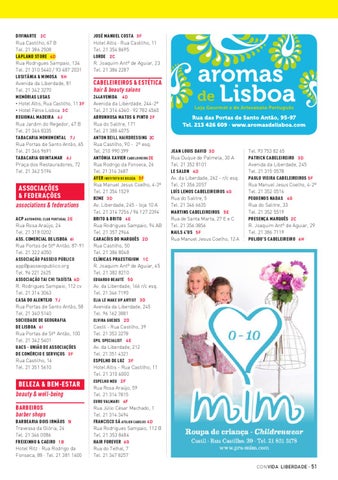 Rua Júlio César Machado, 1 Tel. 21 314 3494 FRANCISCO SÁ ATELIER CABELOS 4 D Rua Rodrigues Sampaio, 112 B Tel. 21 353 8484 HAIR FOREVER 6 G Rua do Telhal, 7 Tel. 21 347 8257 CON VIDA LIBERDADE · 51